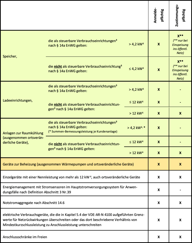 - Aus den in Absatz (2) genannten Gründen sind die in der nachfolgend aufgeführten Tabelle genannten Vorgänge, sowie der Anschluss und die Errichtung von Anlagen und Geräten anmelde- und/oder zustimmungspflichtig.